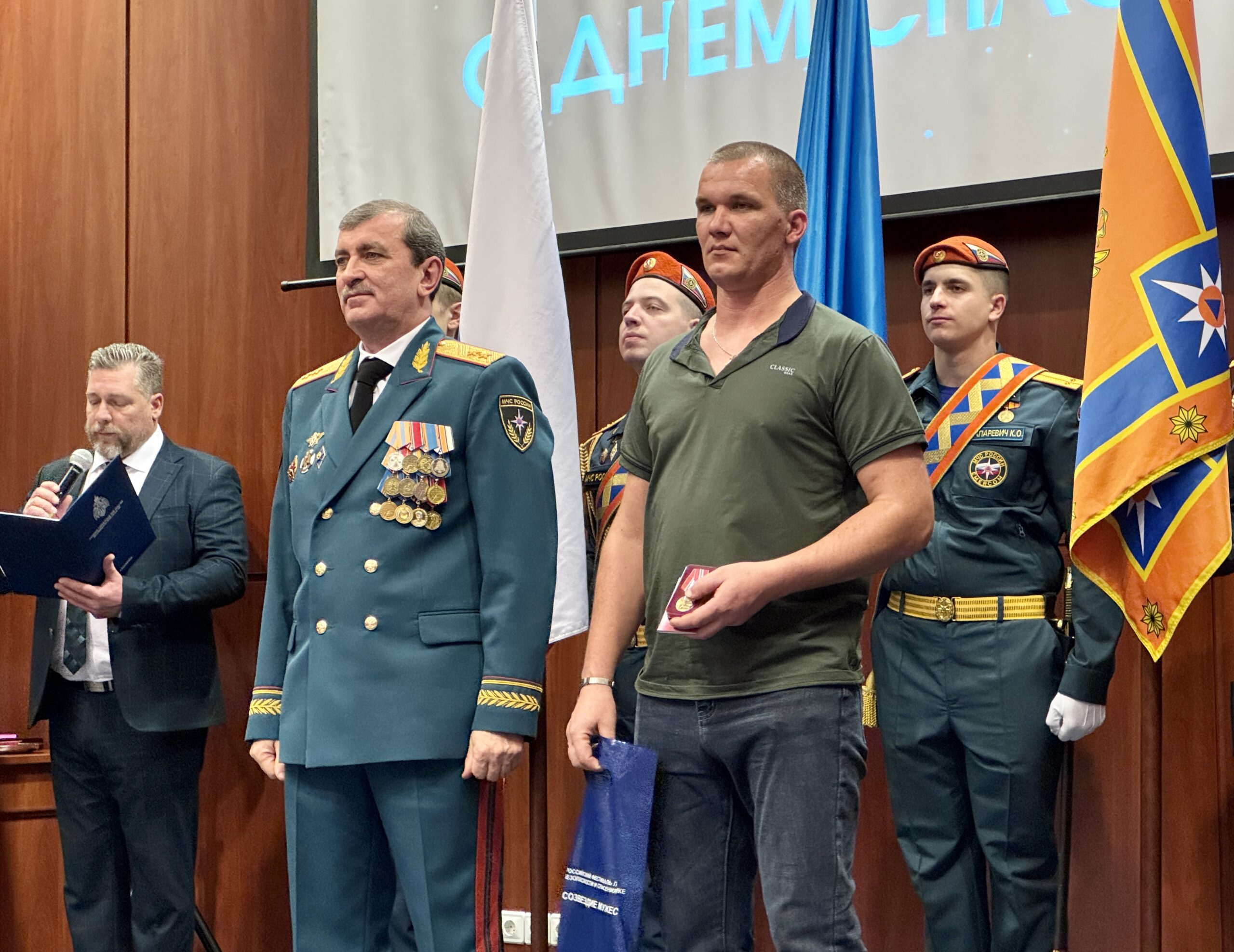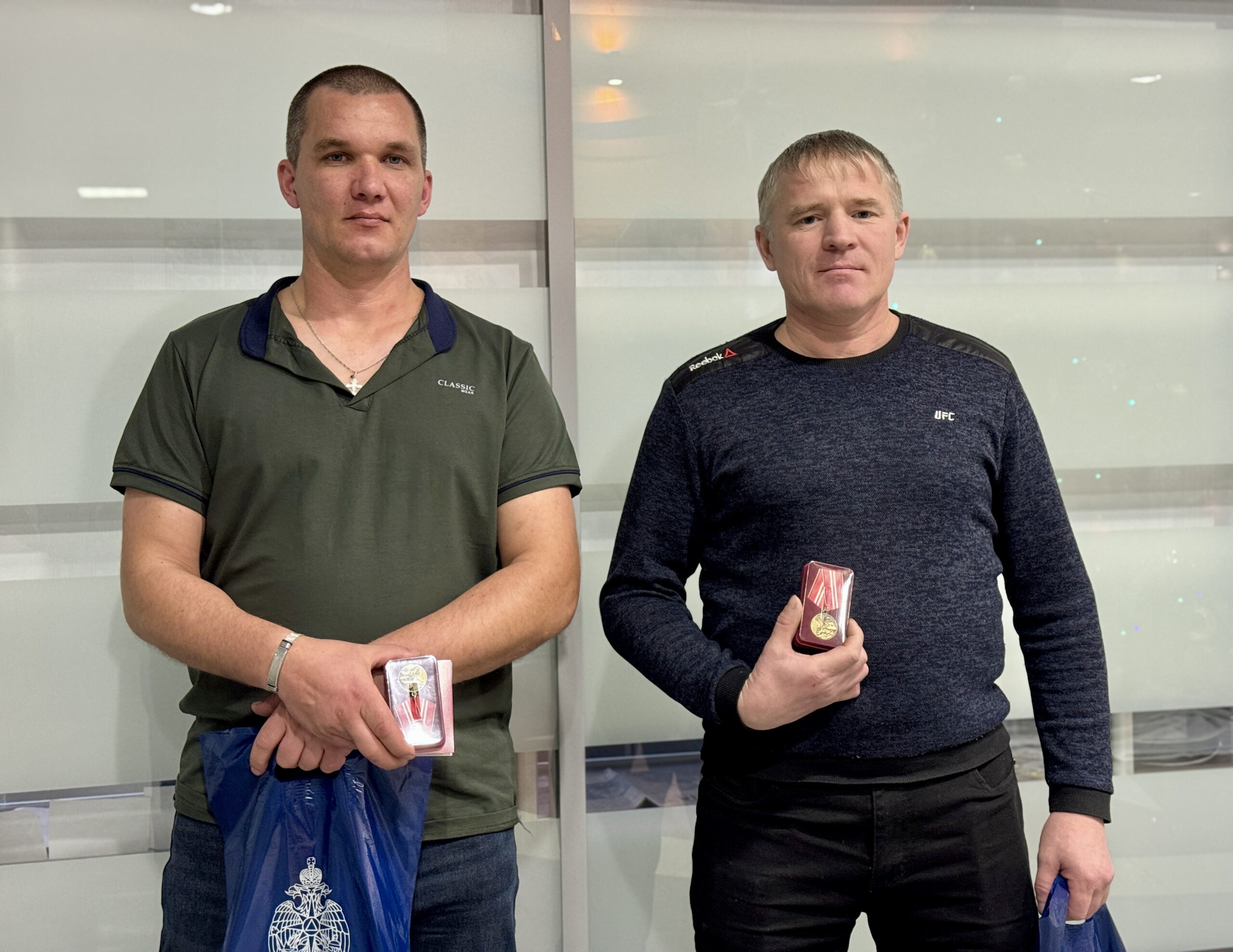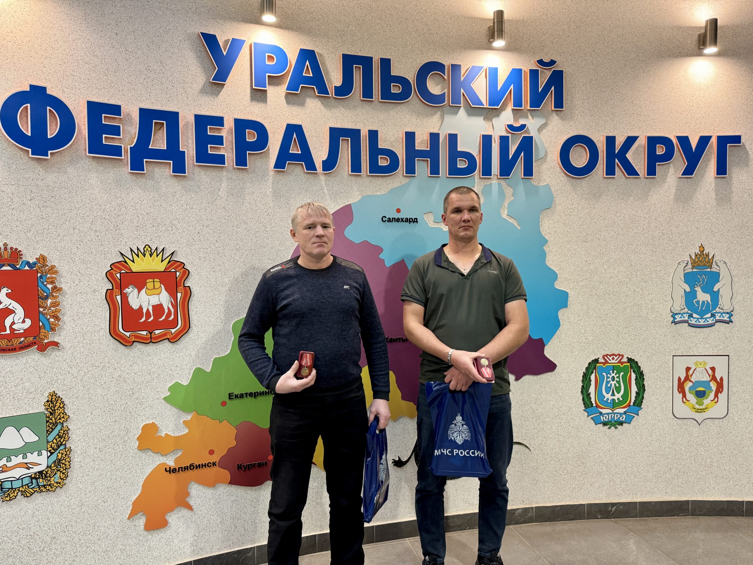 Награды сотрудникам «Спецавтобазы» вручил начальник ГУ МЧС России по Свердловской области Виктор Теряев. На церемонии присутствовали только двое из героев, Сергей и Михаил, Игорь выполняет боевые задачи в зоне СВО, куда отправился добровольцем.